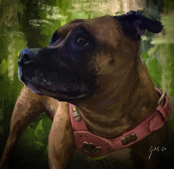 The Bordoodle was painted as part of a small series of animal portrait studies examining breed-specific form and expression. This piece focuses on texture and temperament — the way softness of fur, light, and colour work together to convey innocence without idealisation.