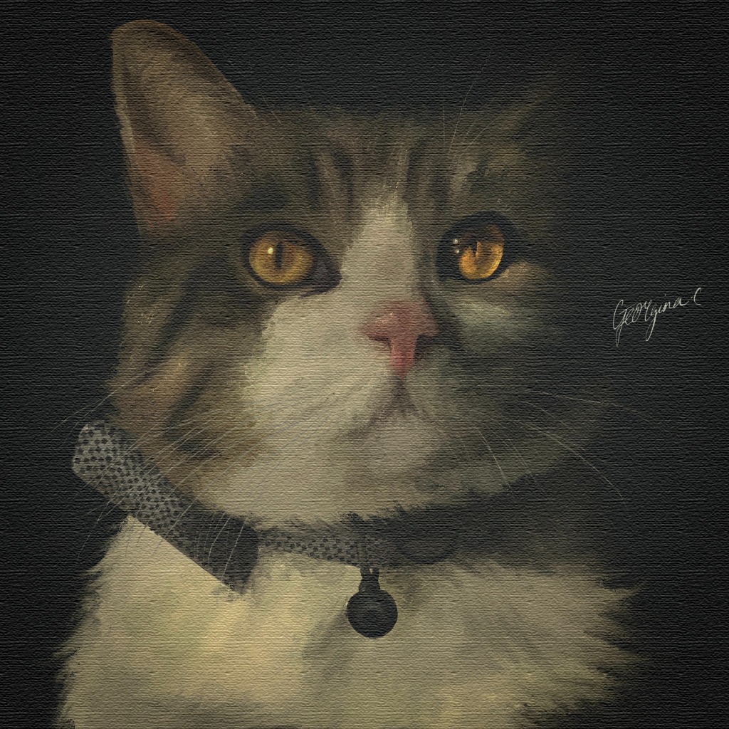 This portrait was created as a gift and memorial, painted for a friend in remembrance of her cat. The work approaches loss through stillness rather than sentiment, portraying not absence but enduring presence. In painting the subject, I aimed to capture the subtle balance between portraiture and memory — how an image can hold life long after it has passed.