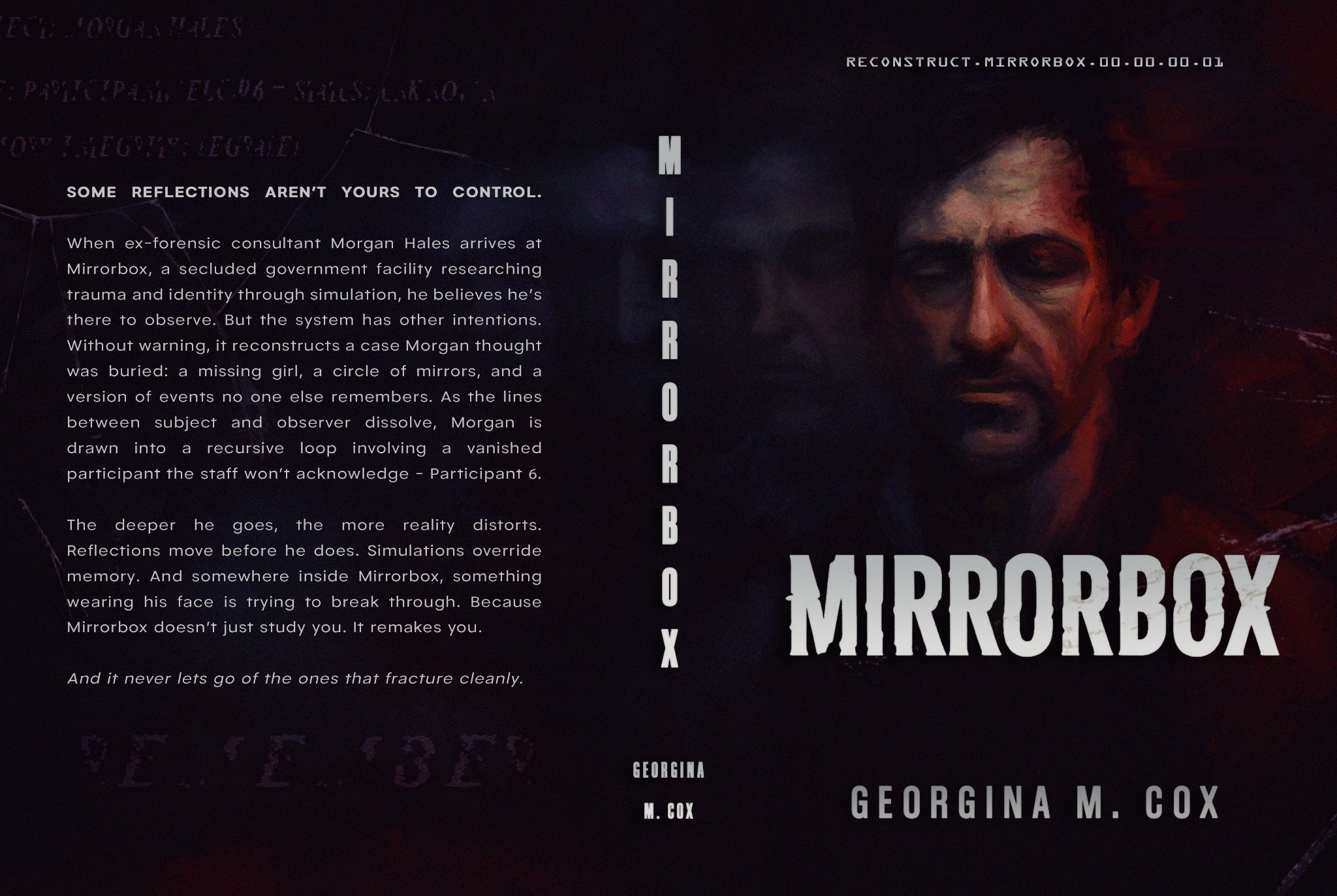 Serving as the debut cover for Mirrorbox, this edition introduces the world of experimental trauma simulation through a psychological-horror lens. The composition merges painterly realism with digital degradation—fractured brushwork echoing the novel’s central motif of identity recursion.