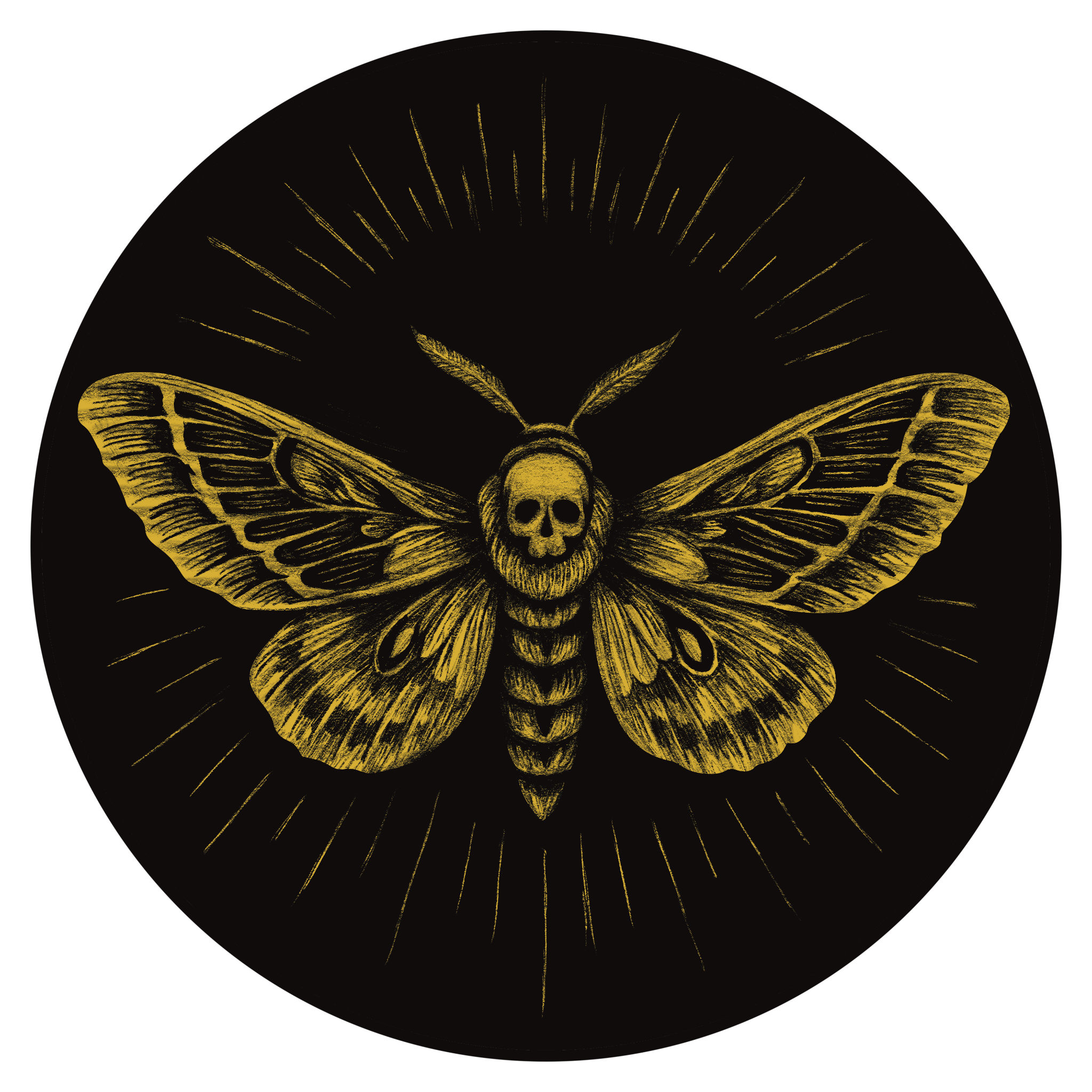 Created as a symbolic motif for Obliviora — Georgina M. Cox’s dark-romantic art brand — this gold-ink illustration of a death’s-head hawkmoth merges memento mori tradition with celestial iconography. The radiating lines evoke sanctity and transformation, reframing decay as something illuminated rather than feared.