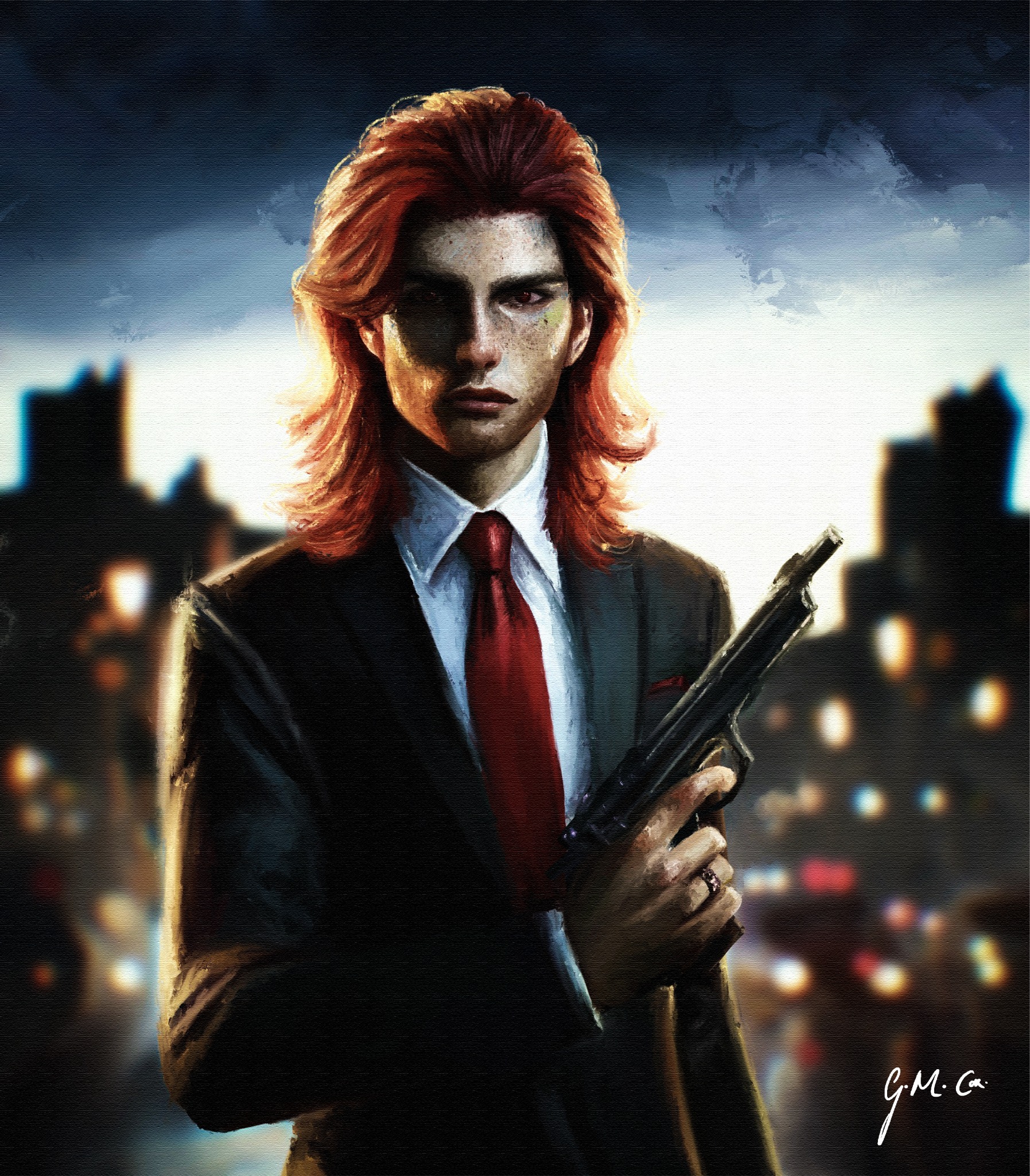 A private commission piece depicting a cinematic portrait of an original character. Painted digitally, the work balances realism with stylisation — capturing a sense of narrative drama through lighting and atmosphere. The contrast of warm highlights against the urban dusk backdrop enhances the noir-inspired tone, with subtle attention to expression and costume design.