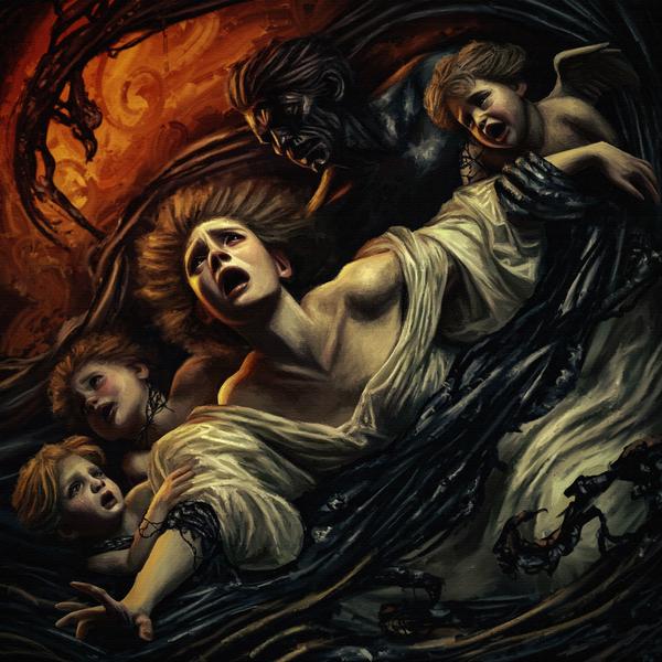 Part of the Damnation series, The Offspring I uses painterly texture and chiaroscuro light to mimic oil painting while remaining fully digital — blurring the line between medium and message.